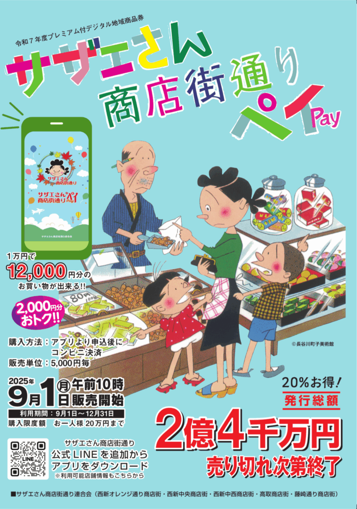 サザエさん商店街通りペイ、保険・美容問わずご利用いただけます。