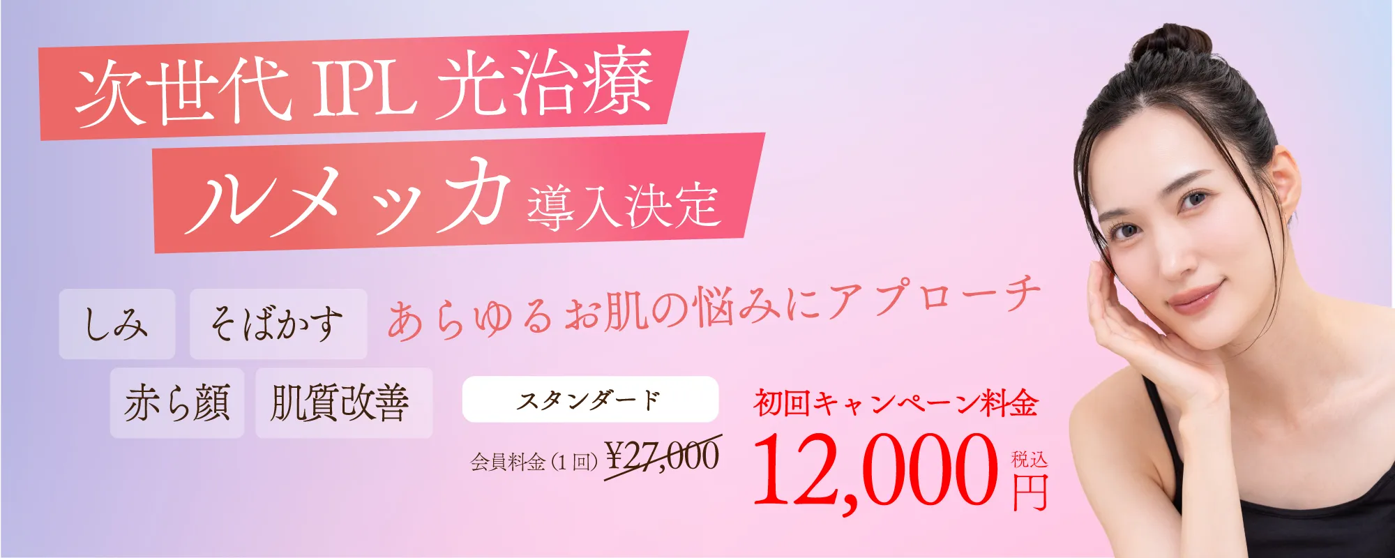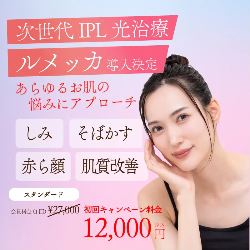 次世代IPL光治療「ルメッカ」はしみそばかす、赤ら顔をはじめ、あらゆるお肌のお悩みにアプローチします、ぜひご利用ください。